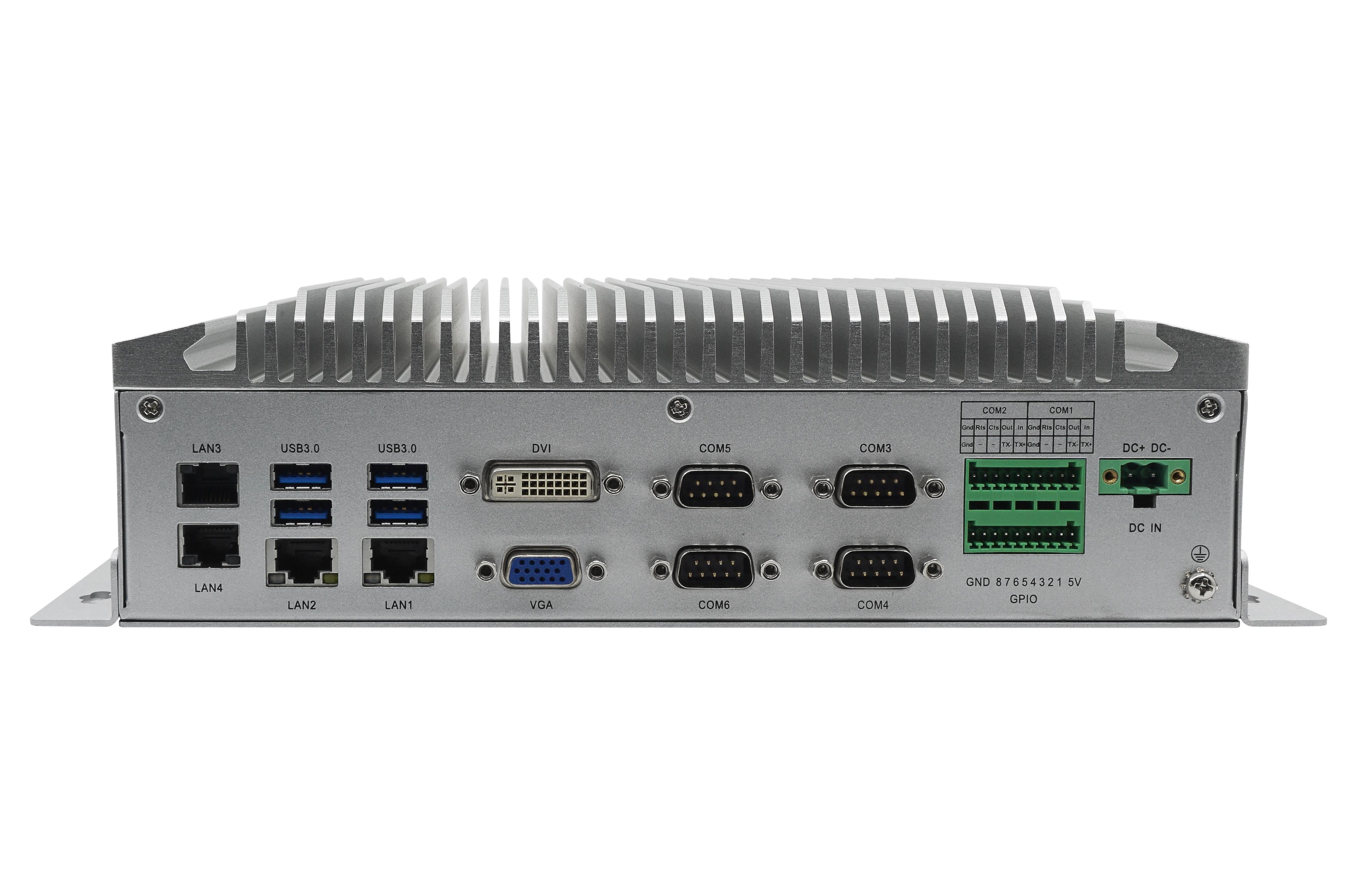 RS-232:后I/O 6個串口:COM1&2支持四線RS232/422/485, RS485帶隔離 COM3~6支持RS232(可選串口模塊擴展多4個RS232或4個485串口)